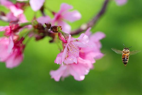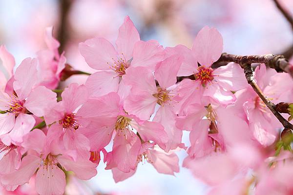 ▲一整排的粉紅色櫻花爆開,相當漂亮